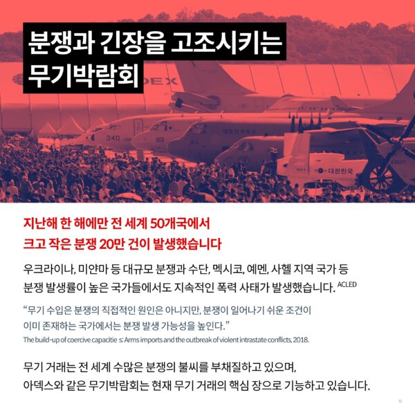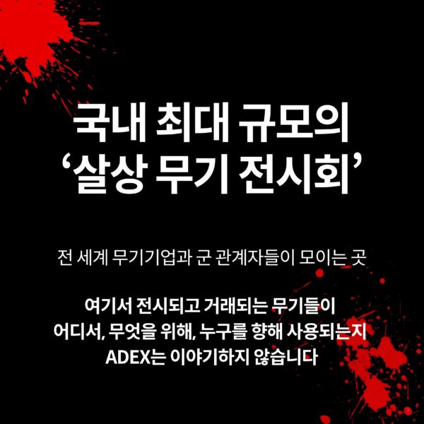 아래에서도 반복되지만, 한국산 무기가 수출, 사용되는 국가는 대부분 중동, 동남아시아 등 인권 상황이 열악하거나 국내외 분쟁에 개입된 국가가 많습니다. 이런 국가들은 ADEX 등 무기박람회에도 다수 ‘VIP’로 초청됩니다.